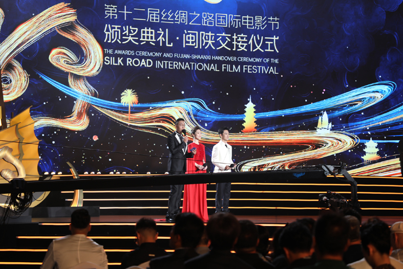 絲路通天下,光影耀閩都。9月26日晚,第十二屆絲綢之路國際電影節在福州海峽奧體中心圓滿落幕,福建省領導張彥、李德金、江爾雄、嚴可仕,陜西省領導孫大光和外國嘉賓出席。